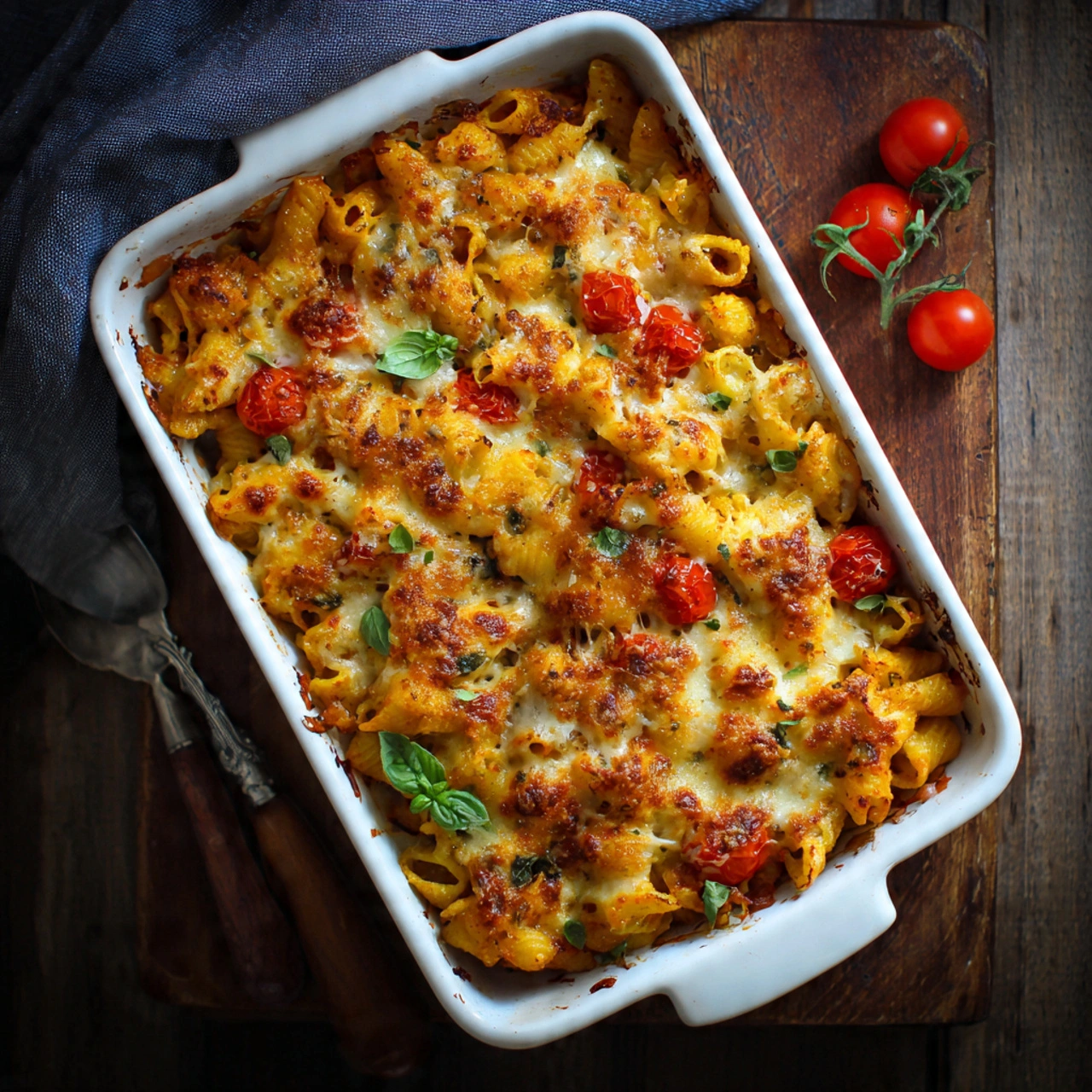 For a dinner party, serve the bake directly from the dish at the table — there is something genuinely inviting and generous about a bubbling, golden-topped pasta bake brought to the table whole. It photographs beautifully, serves easily, and feeds a crowd without stress.