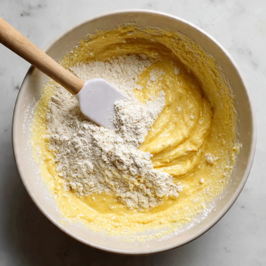 Add the egg, fresh lemon juice, lemon zest, and vanilla extract to the butter mixture. Beat on medium speed until fully incorporated, about 1 minute. The batter may look slightly curdled at this point — that is completely normal and will smooth out beautifully once the flour mixture is added. Do not panic and do not add extra flour to compensate.
